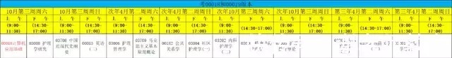 根据“先报那些只在4月或10月才有的科目”无论如何,我们必须先在10月的星期六上午安排00018课考试期间。以下是我们根据多年经验安排的课程表。同学们可以参考一下。