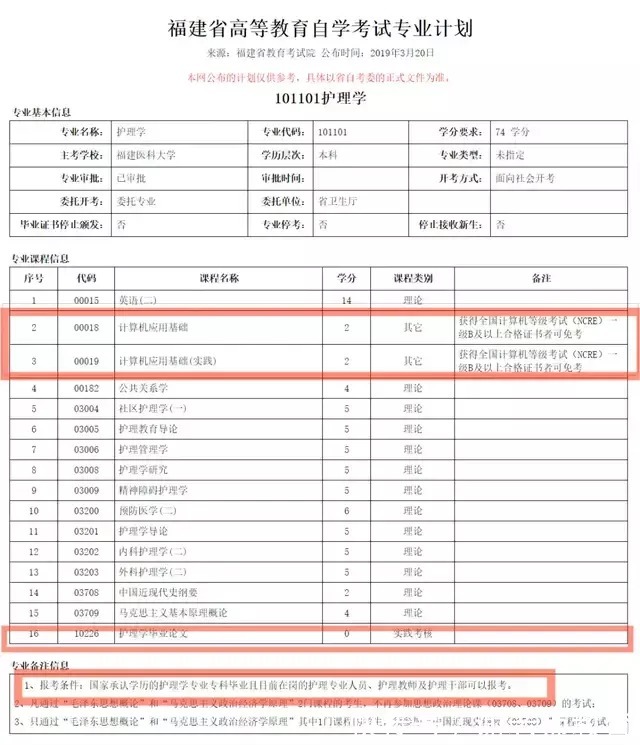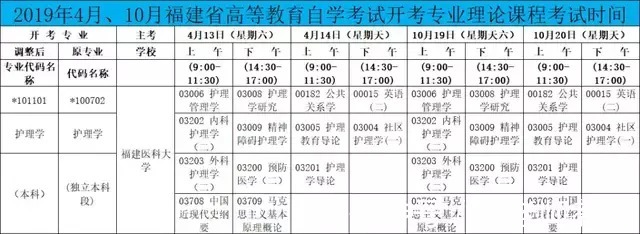 1。福建医科大学护理自学考试实践课00019暂无考试安排(本科)。学生可以申请其他学院和大学的其他专业。 ——报名时间是12月,考试时间是3月,所以大家要先参加考试。毕业论文大约在三、九月份注册,大家要注意了。